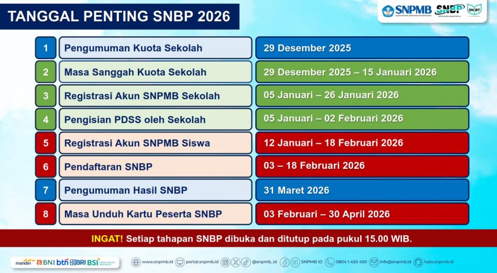 - Siswa yang dinyatakan lulus seleksi Jalur SNBP 2026 tidak dapat mendaftar seleksi Jalur Mandiri di PTN manapun.